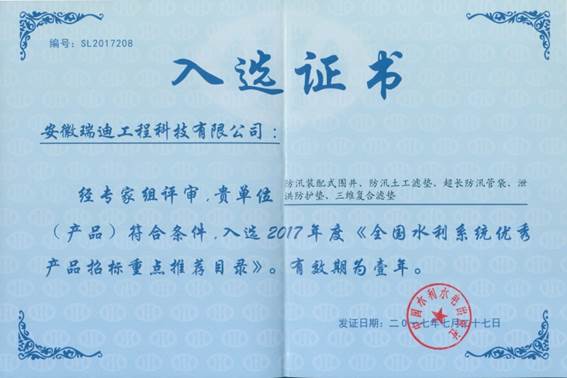 安徽瑞迪公司防汛類多項發(fā)明專利產(chǎn)品入選《全國水利系統(tǒng)優(yōu)秀產(chǎn)品招標重點推薦目錄》