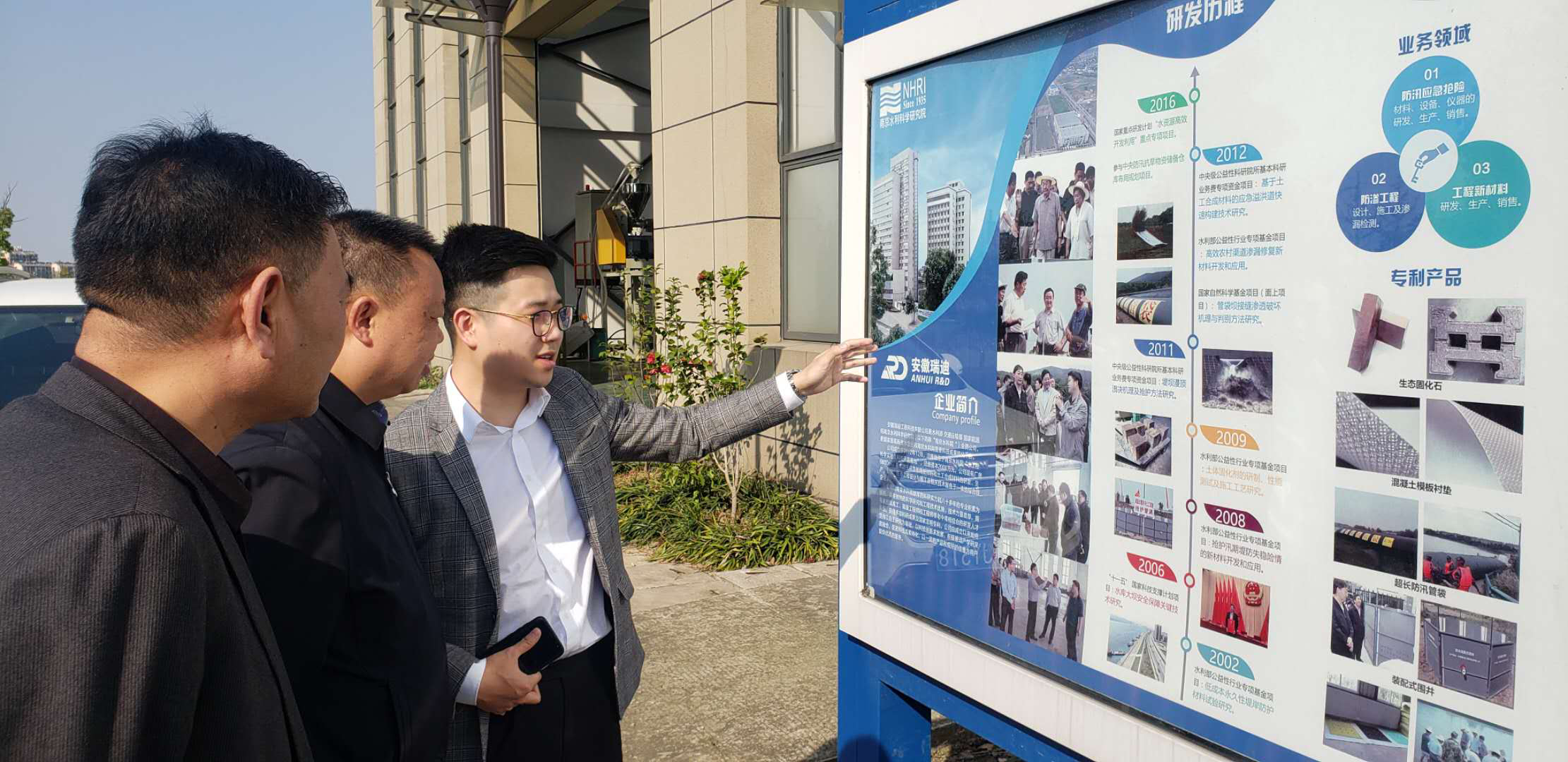 我公司防汛抗旱事業(yè)部相關(guān)負(fù)責(zé)人介紹了安徽瑞迪公司的發(fā)展歷程、科技成果轉(zhuǎn)化情況、生產(chǎn)工藝流程等,重點(diǎn)介紹了超長防汛管袋、泄洪防護(hù)墊、防汛裝配式圍井、防汛土工濾墊等主營產(chǎn)品。邱站長等領(lǐng)導(dǎo)在聽取了相關(guān)介紹后,對安徽瑞迪公司的產(chǎn)品質(zhì)量、售后服務(wù)等工作給予了充分的肯定,并表示安徽公司在下一步工作中更將進(jìn)一步推進(jìn),把南科院更多先進(jìn)的科研技術(shù)轉(zhuǎn)化并應(yīng)用到實(shí)際當(dāng)中來,不斷抓住機(jī)遇,開拓創(chuàng)新,全面提升當(dāng)前全國的防汛抗旱工作開展水平。