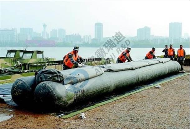 充水式橡膠子堤是由充水膠囊和防護(hù)墊片構(gòu)成,三個膠囊固定成一個穩(wěn)定三角形,主要用于城市防洪搶險、堤壩的臨時加高、阻滯洪水漫溢等。其特點(diǎn)是重量輕、耐壓強(qiáng)度高、氣密性能優(yōu)良,是一種輕便、靈活、高效、可重復(fù)使用的防汛搶險工具。
